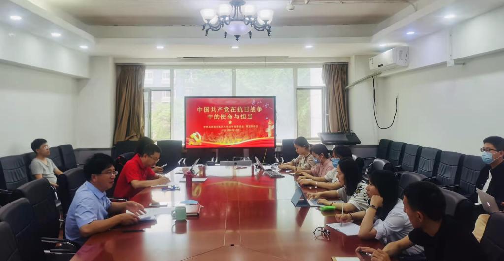 周友军书记从四个方面讲述了中国共产党在抗日战争中的使命与担当。一是中国共产党最早举起抗日救国的大旗。中国共产党从九一八事变后就揭露日本帝国主义的侵略本质,呼吁东北人民发动游击战争,抵抗日本侵略;同时要求东北党组织发动民众,开展抗日武装斗争。二是中国共产党倡导和维护抗日民族统一战线。1935年12月,中共中央政治局在瓦窑堡召开会议,确定了建立抗日民族统一战线的策略;此后,中国共产党由反蒋抗日到逼蒋抗日,再经过西安事变的和平解决,实现了联蒋抗日。三是中国共产党提出和实行全面抗战战略。1937年8月下旬,中共中央在洛川召开政治局扩大会议,提出了全国人民总动员,开放民主,改善民生,广泛发动群众,武装群众,人民参加战争、支援战争的全面抗战路线;会议通过的《中国共产党抗日救国十大纲领》,阐明了全面抗战路线的主要内容;中国抗日战争的胜利,是人民战争的胜利,也是中国共产党提出的全面抗战路线的胜利。四是中国共产党提出持久战的方针和抗日游击战争的战略战术。中国共产党在科学地分析中日双方政治、经济、军事等方面情况的基础上,针对“亡国论”和“速胜论”的错误观点,提出了持久战的理论,全面地考察和论证了中国能够、也必须经过持久抗战取得胜利的客观根据,提出持久战的抗日将经过战略防御、战略相持和战略反攻三个阶段。中国共产党领导的人民武装成为中国抗战亦即世界反法西斯战争东方主战场的中坚力量,发挥了中流砥柱的作用。