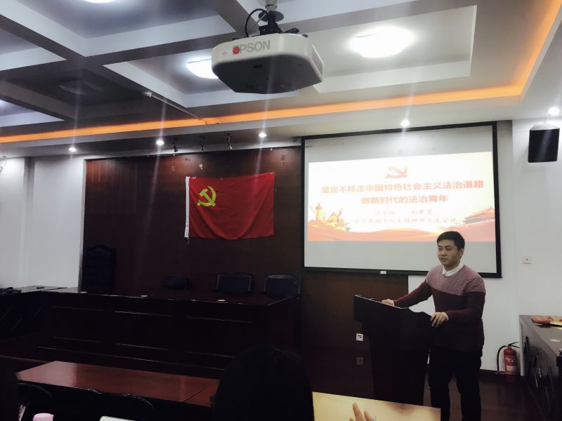 刘秉楚同志首先对依法治国基本方略进行了阐释。从全面依法治国的五大原则,以及全面依法治国的重要作用,总结出中国特色社会主义法治道路是我国的必然选择。之后,他从多个角度概括了我国法治建设的成果,包括:科学立法、民主立法越来越被重视,法治政府建设稳步推进,依法行政制度体系不断完善,决策科学化、民主化、法治化水平不断提高。同时,刘秉楚同志也提到了法治建设中的不足,包括:依法治国在一些地区、一些部门和一些领域推进不平衡,一些重大举措尚未有效落实;法制专业队伍正规化、专业化、职业化建设需要加快推进;人民群众对一些改革措施的时效性和获得感还不够满意。最后,刘秉楚同志对我们发出了呼吁,提出要做新时代的法治青年,以自己的实际行动助力祖国的法制建设,要不忘初心、牢记使命,在中国特色社会主义法治道路上砥砺前行、奋勇前进。党课的过程中,同志们认真聆听,并不时做笔记,在党课结束后,一些同志针对此次课题提出了自己的看法,同刘秉楚同志交流分享,并为其党课提出了意见与建议。