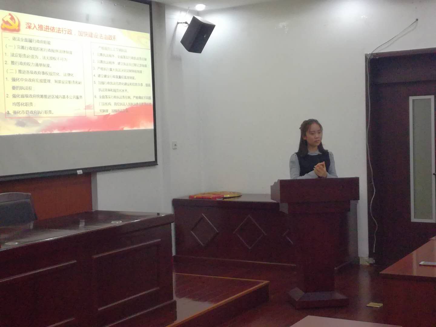 在交流环节硕士研究生二年级员工党员茹超同志认为“法律是治国之重器,推动我国经济社会持续健康发展,不断开拓中国特色社会主义事业更加广阔的发展前景,必须全面推进依法治国。法学学子要努力学习,扎实专业知识,为法治建设做贡献。”员工党员李亚琦同志则对主讲人的"知法律于心,守法律于行"表达了高度的认同,认为作为一名法学专业员工,我们不仅要理论上明白,还要实践中坚守。